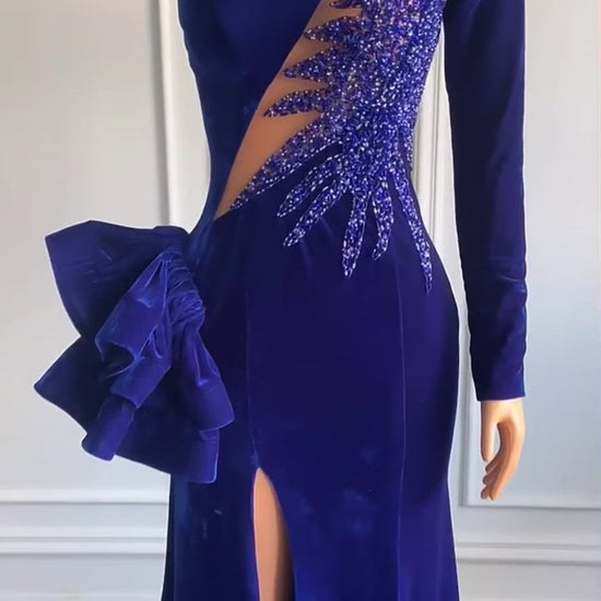 This design has long sleeves and is velvet fabric.